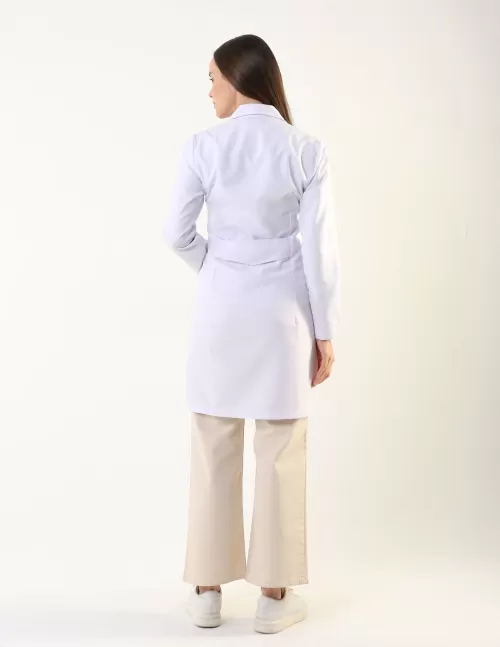 Kadın Belden Oturtmalı Beyaz Alpaka iş önlüğü