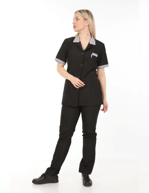 Mor temizlikçi takımı önlüklü model, temizlik sektöründe çalışan kadınlar için mükemmel bir seçimdir. Hem rahat hem de şık olan bu takım, kadınların tarzlarını yansıtmalarına da olanak tanır.