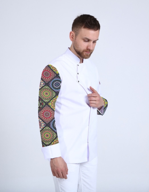Etiketler:Kolu Mandala desenli beyaz şef ceketi